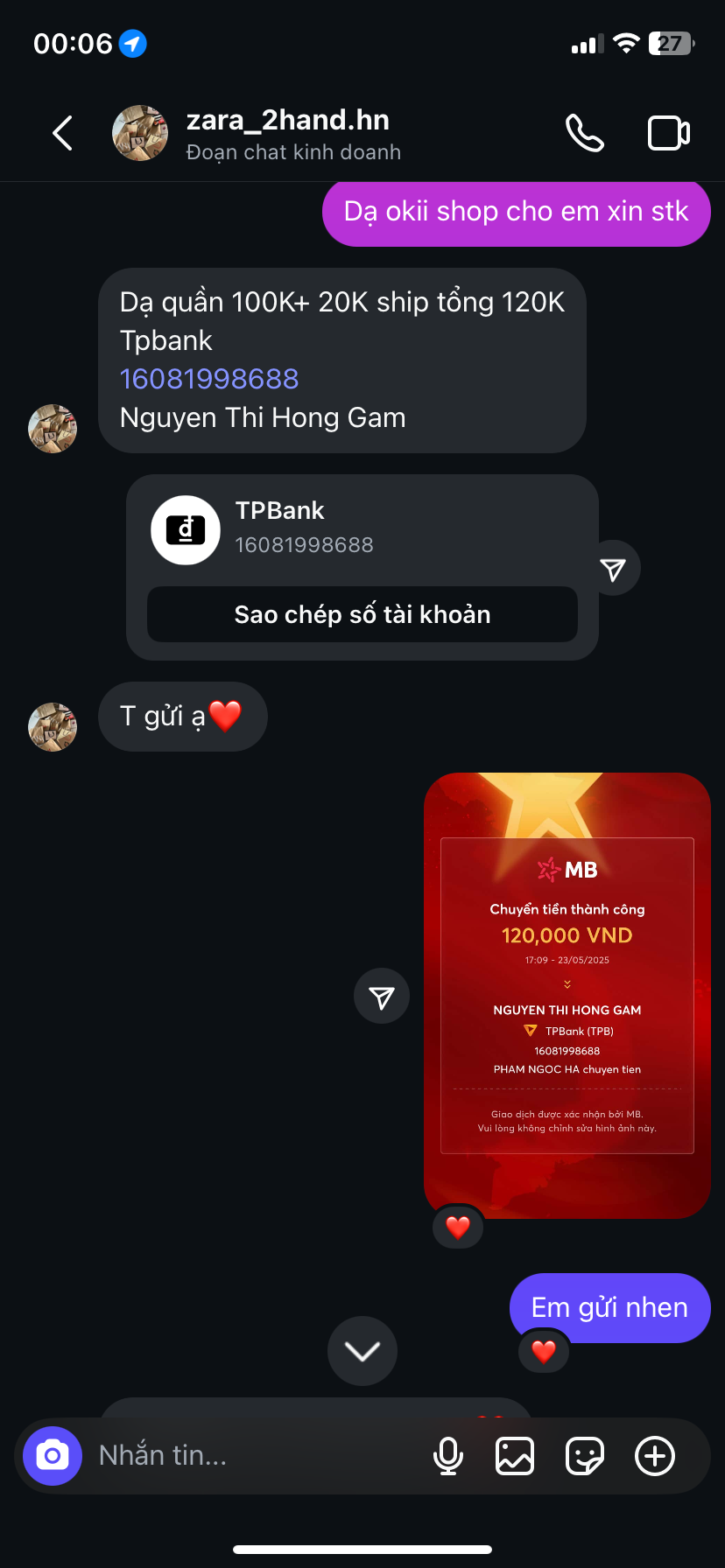 Tố cáo Scammer Nguyễn Thị Hồng Gấm, zara_2hand.hn